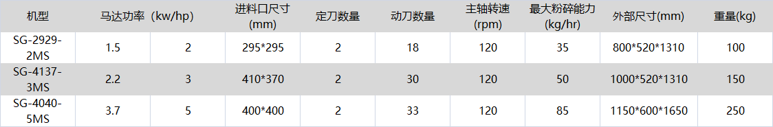 ·高品質(zhì)的粉碎顆粒,低轉(zhuǎn)速特制減速馬達(dá)(50r/min)