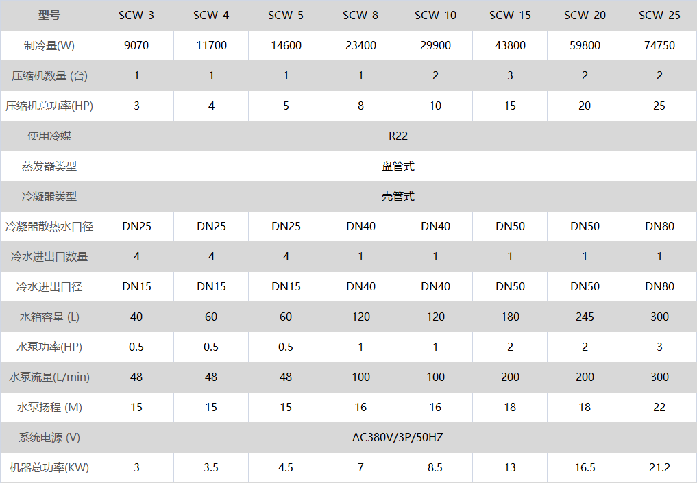 水冷式冷水機(jī)采用殼管式冷凝器,導(dǎo)熱快,散熱效果佳??商峁?℃- 25℃冷凍水,低溫型更可低至-80℃。壓縮機(jī)功率從3HP-50HP可選,制冷量能力可達(dá)7800-128570 Kcal/h.